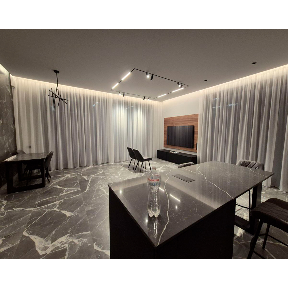 Повітряні білі тюлеві гардини створюють відчуття легкості та простору в кімнаті. Напівпрозора тканина м’яко розсіює світло, наповнюючи приміщення природним освітленням. Ідеально підходять для оформлення великих вікон у вітальні або їдальні, додаючи елегантності та завершеності інтер’єру.