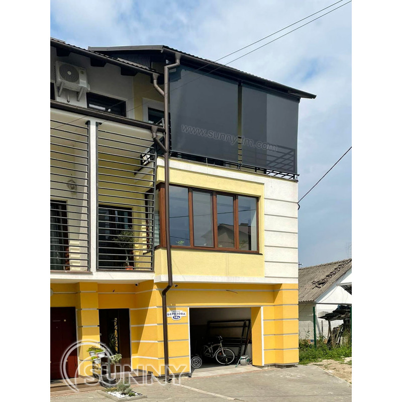 Відкрита система без напрямних з натягом тканини за допомогою пружинно-інерційного механізму і фіксацією за допомогою кронштейнів.